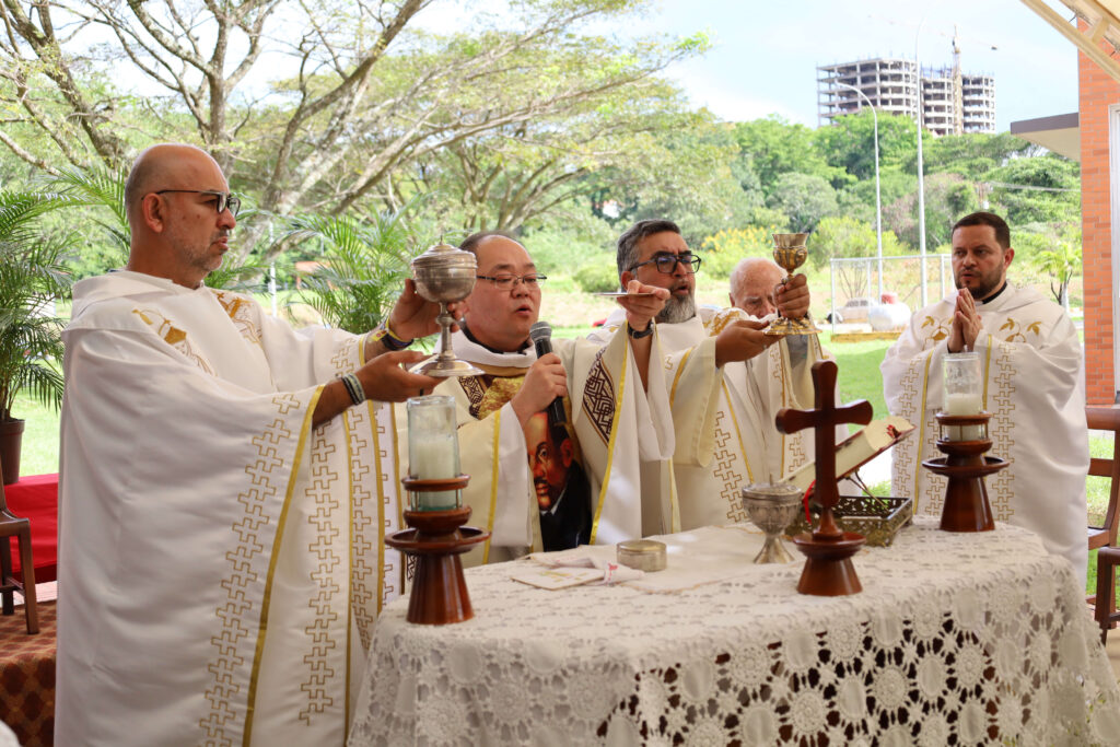 En la Eucaristía presidida por el Rector de la UCAT, el Dr. Pbro. Yonekura Shimizu reflexionó en la homilía desde la gratitud y sentida nostalgia. “Damos gracias a Dios por el don inmenso que ha significado la presencia de la Compañía de Jesús en nuestra Universidad Católica del Táchira durante 63 años, una etapa fundacional que, por Providencia Divinia, hoy suspende (no suprime) su ciclo de cooperación apostólica directa con la Diócesis de San Cristóbal”. Desde una acción de gracias y discernimiento, indicó que Dios nos enseña a orar, dando la clave para entender la nueva etapa de la UCAT.